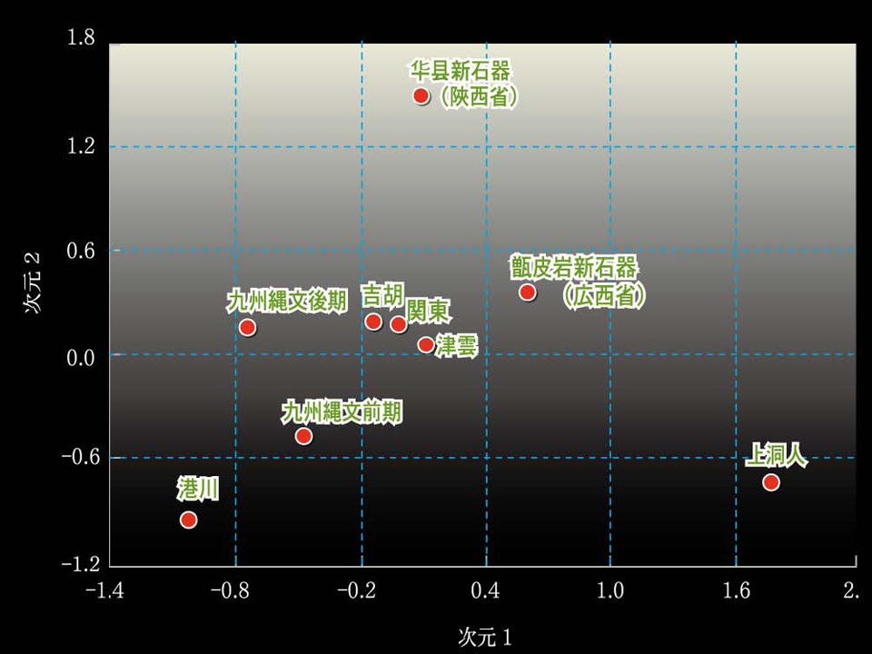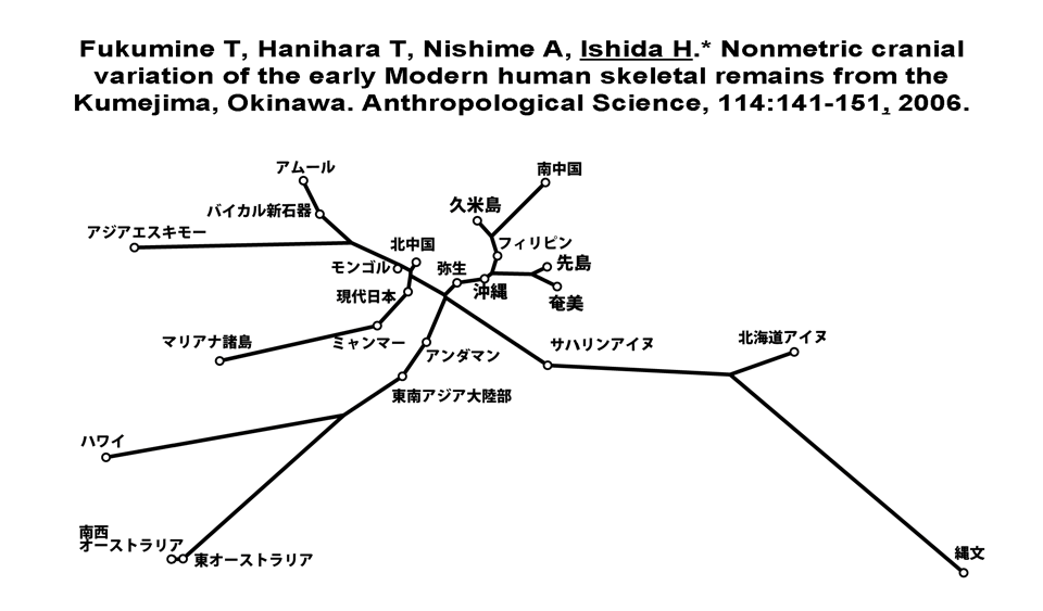 沖縄は、本島、奄美、先島、久米島と一つにまとまり、弥生時代人を始めとして、本土日本集団とともに、南中国や東南アジア集団との類似も見られたこれは、遺伝学的研究でも言われているように、先史時代から歴史時代にかけて、本土日本に加えて、南方からの遺伝的影響を受けている可能性を示唆した。