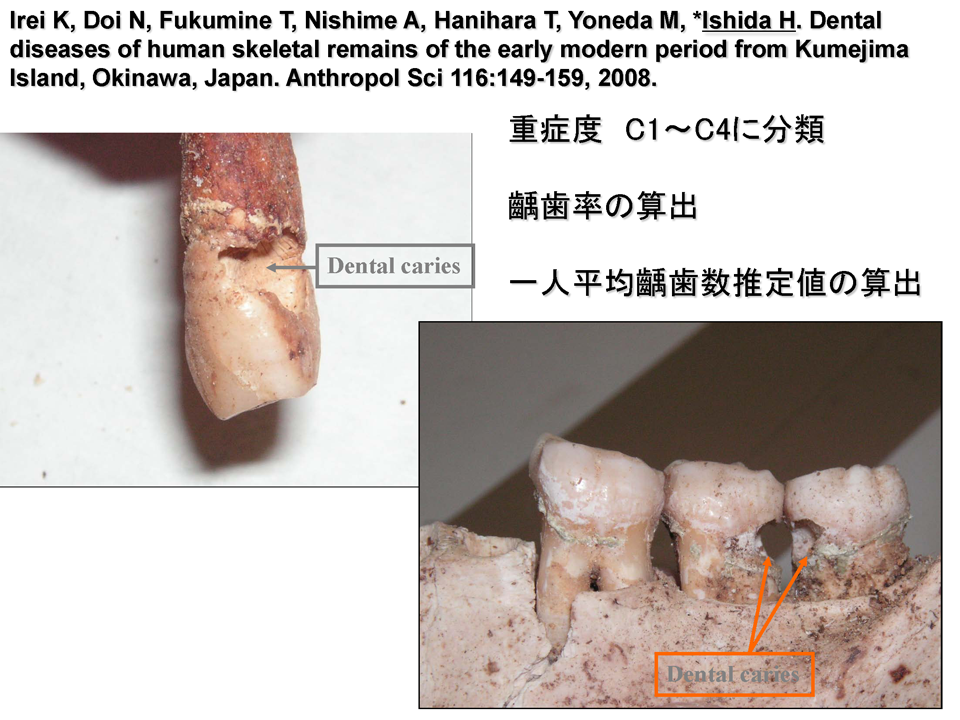次に、齲蝕、生前脱落歯、エナメル質減形成、歯石について調査した。