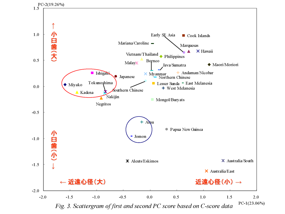 冠の形態では、石垣や宮古は、幾分、北海道アイヌに近いことが分かった。