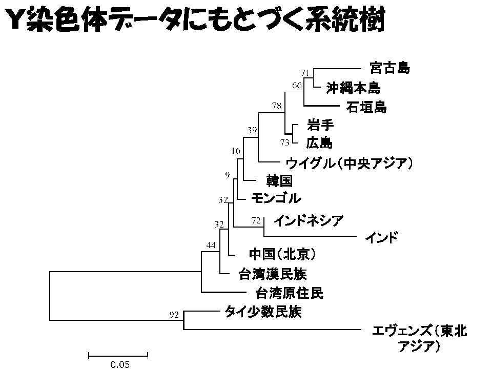 先島諸島住民は母系(mtDNA)においても父系(Y-STR)においても、沖縄本島住民ともっとも高い遺伝的近縁性を示し、地理的に近い台湾先住民とは、低い遺伝的近縁性を示した。YAP+/-とY-STRを組み合わせた解析により、YAP+を縄文マーカーと仮定した場合、先島諸島の男性系統においては、遺伝的多様性の低い縄文系集団に遺伝的多様性の高い集団が、流入した可能性が示された。
