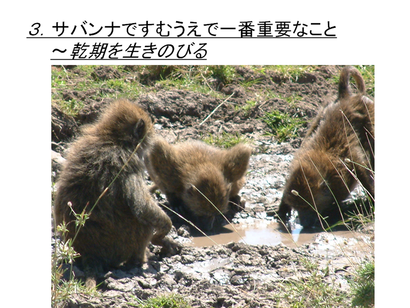サバンナで生活する上で最も重要なことは乾期をどう生きのびるかということである。